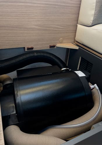 Das Combi D 6E Truma®-Heizsystem. Im Gegensatz zu anderen Heizungen derselben Marke benötigt dieses System kein Gas, da es sich um ein Hybridsystem handelt, das mit Strom und Diesel betrieben wird. Dieses Heizsystem bietet 3 Vorteile, die Ihren Komfort an Bord verbessern: