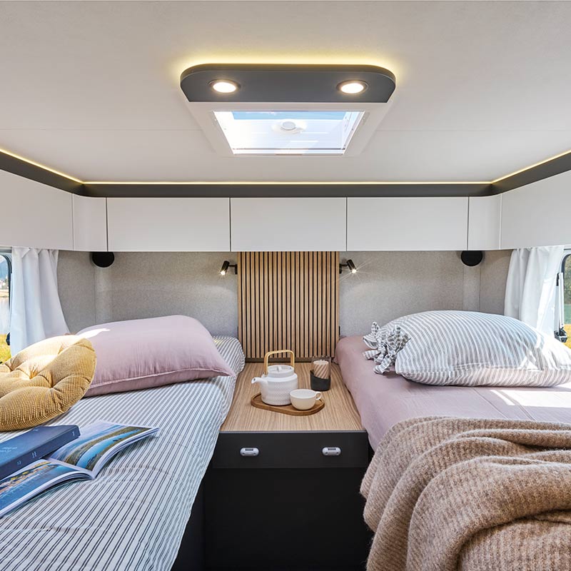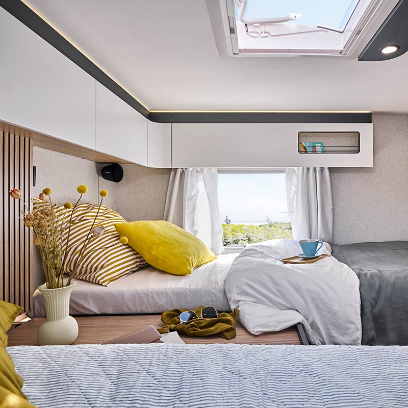 Mit ihrer umfangreichen Ausstattung und ihrer Konzeption für lange Reisen sprengen sie alle Grenzen und bieten das Nonplusultra an Technologie wie eine 300-Ah-Lithiumbatterie, zwei extrem leistungsstarke 200-W-Solarmodule, einen Kompressor-Kühlschrank und eine Truma® Combi D6E-Hybridheizung. Sie garantieren Ihnen eine unvergleichliche Leistung, damit Sie reisen können, wohin Sie wollen, ohne jemals auf Komfort verzichten zu müssen. Warten Sie nicht länger!