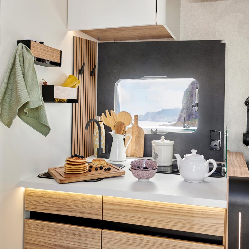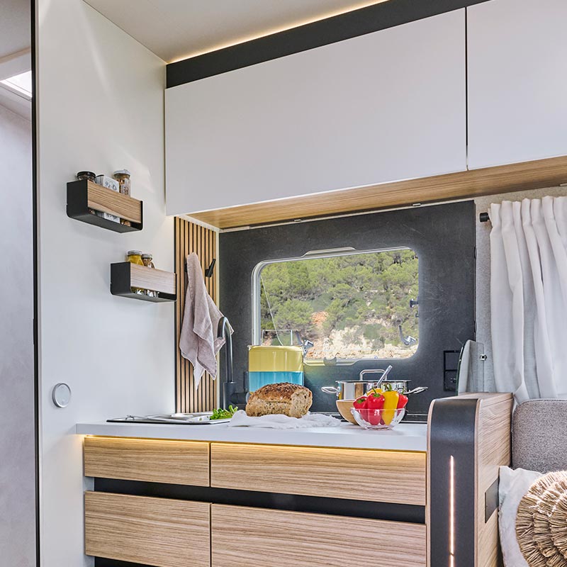 • Genießen Sie während der Reise die Ruhe und Ordnung dank der rutschfesten Matten in allen Schubladen und Schränken der Küche, die Ihr Geschirr und Ihre Vorräte sicher aufbewahren.